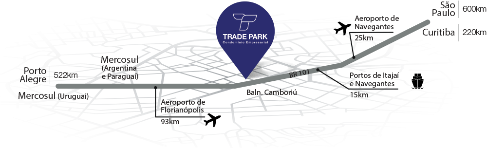 O Trade Park Condomínio Empresarial está localizado em Camboriú SC BR 101, Marginal Oeste, KM 131.